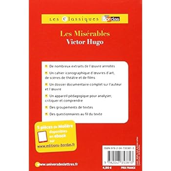 Une collection de Classiques pour analyser et comprendre les grandes oeuvres de la littérature.L'étude du texte intégral "Les Misérables" grâce à un appareil critique détaillé. Cet ouvrage comprend :1. Des questionnaires de lecture pour une approche méthodique du texte.2.Le cahier iconographiqueLes Misérables au cinéma (Le Chanois, Raymond Bernard), dans la peinture (Delacroix) et la sculpture (Pompon). Des questions de lecture de l'image sont proposées dans la rubrique " Le texte et ses images ".3. L'appareil critique Biographie de l'auteur et genèse de l'œuvre. La liberté d'expression. La misère, le peuple et l'Histoire. Des groupements de textes sur l'enfance malheureuse (Dickens, Vallès...) et le personnage du hors-la-loi (Balzac, Dostoïevski...). ...Ouvrage dirigé par Annette Flobert